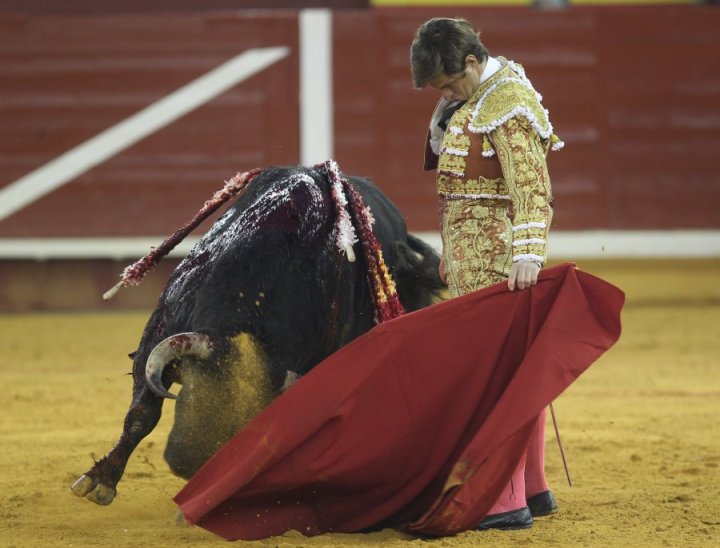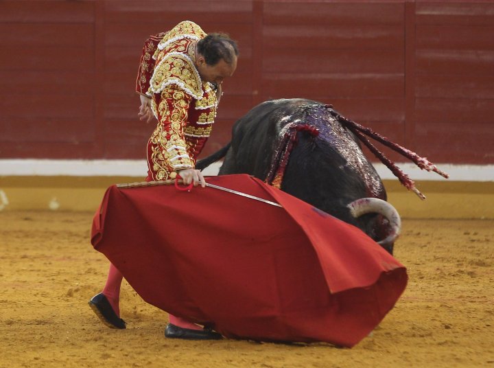 Traía Sureño desde la dehesa de Colmenar unas hechuras armónicas que anunciaban las virtudes de su buena condición. Un cuello largo que tenía como guirnalda ese hocico por delante en el tranqueo que invita a soñar a los de luces. En la capa cantó su rítmica humillación en perezosas embestidas que luego se fueron animando a lo largo de la lida para terminar desarrollando un fondo exquisito de bravura en el último tercio. Pepín se fue acoplando al animal a lo largo de la faena que fue subiendo de intensidad a medida que su tacto fue ganado en cadencia. Disfrutó el veterano matador de la entrega del público, Pepín en su agradecido ánimo de corresponder no tuvo reparos para lucir sobre el albero todos los recursos de su artificiosa tauromaquia. La profunda entrega de las embestidas estuvo equilibrada con la actitud del torero pero seguro que a Pepín le hubiera gustado tener ese punto más relajo que otorga el estar en activo. Hizo la suerte suprema con pureza y paseó las dos orejas de Sureño entre el clamor de un público, que satisfecho con la obra recién concluida también había exigido la vuelta al ruedo para el bravo animal.