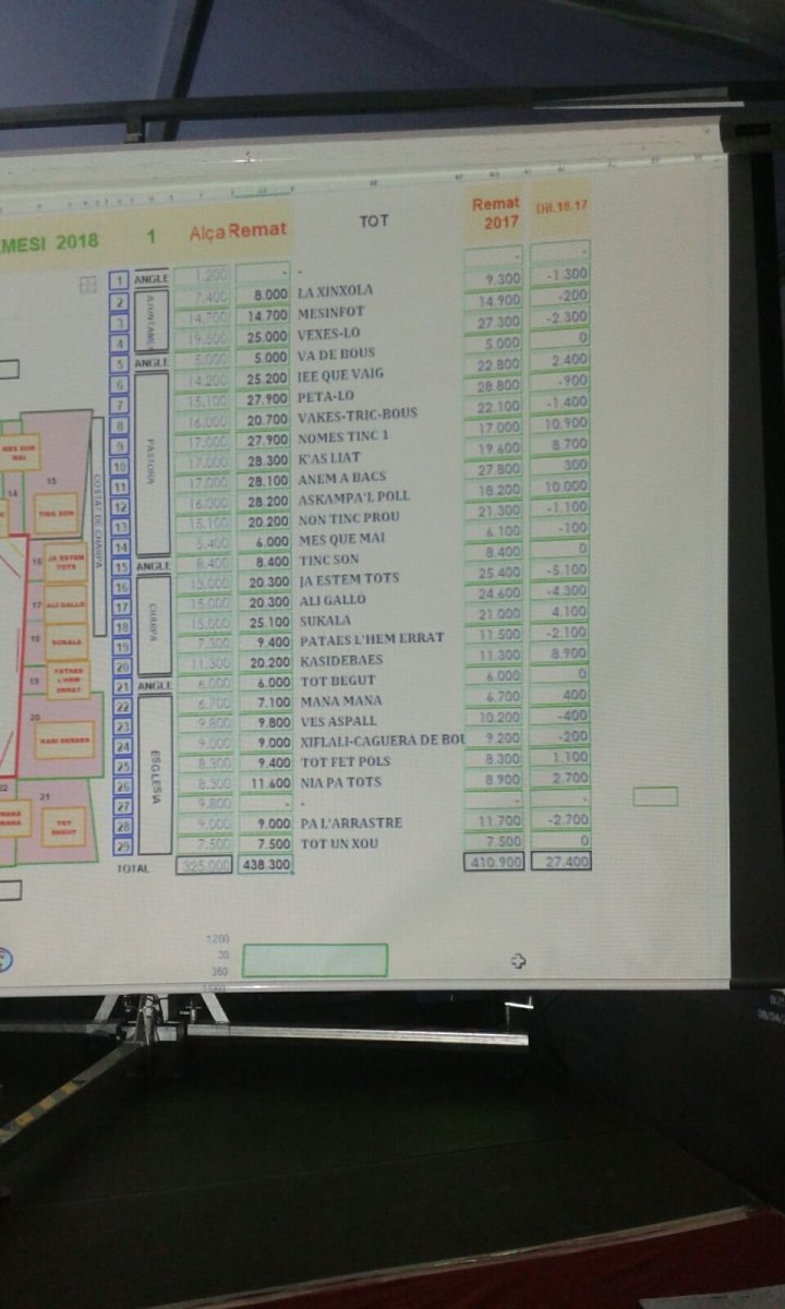 Así, el crecimiento ha fijado el presupuesto para la feria de 2018 en 438.300 euros. Sólo dos cadafales han quedado por ocupar (1 y 27) y se han producido novedades importantes respecto a cadafales históricos al cambiar sus propietarios. Cosas de la subasta.