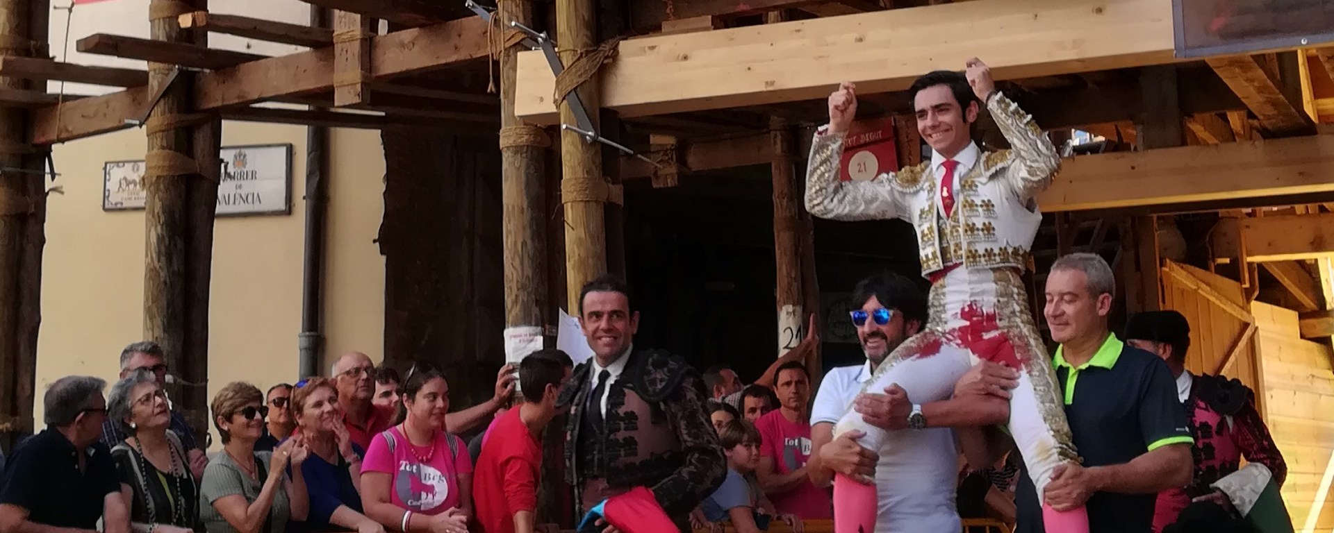 Eso fueron los detalles de torería, el toreo fue preciso y sentido. Primero profundo, luego con los vuelos, y a la altura que pedía la embestida. Muy sutil, suave, muy despacioso. Vertical. Dando siempre importancia al novillo. Dejándoselo llegar, ofreciendo distacia. Porque era pura alegría el galope de ‘Escondido’, que pese a la ligera falta de fuerza, sacó muy buen fondo. Por el derecho consiguió Polope detener el tiempo por momentos, y al natural darle una largura extra. En el remate de la faena, dos circulares por la espada tremendos. Uno finalizado en de pecho y otro con un extraordinario cambio de mano. Un faenón de toreo clásico para armar el taco. Hasta lo sacaron a hombros a la antigua, cargando entre dos con el torero. Miguel Polope por la puerta grande era todo felicidad.