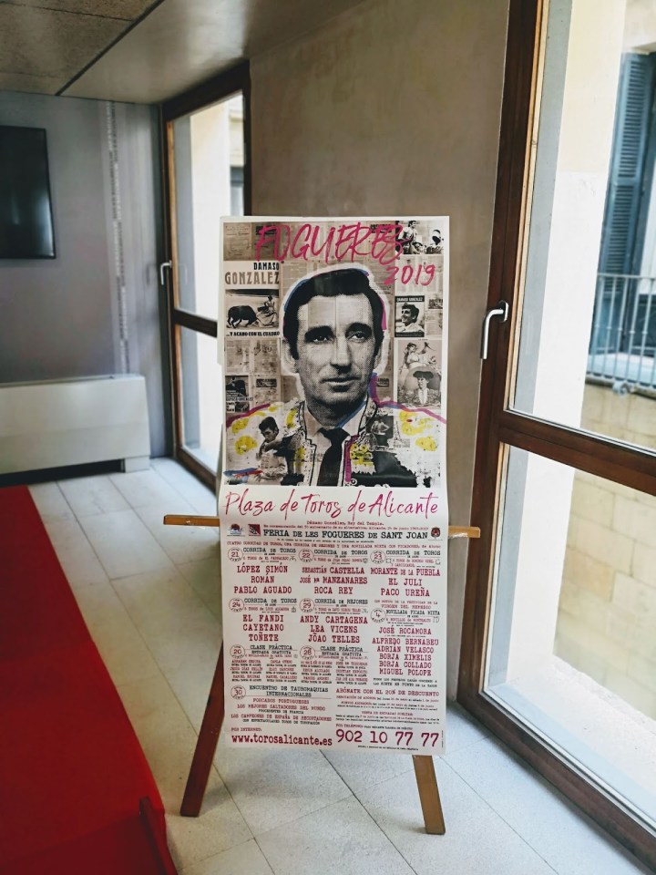 Los carteles de la Feria de Fogueres 2019 ya son oficiales. El motivo del cartel, un collage pop, va dedicado al 50 aniversario de la alternativa de Dámaso González.