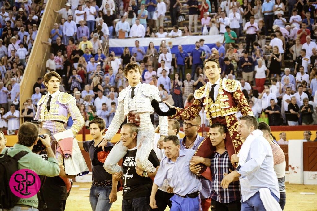 Plaza de toros de Alicante, sábado 22 de junio de 2019. Segunda de la Feria de Fogueres. Toros de Juan Pedro Domecq justos de presentación, nobles y blandos, la segunda mitad del festejo sacó mejor fondo; para Sebastián Castella (ovación y dos orejas), José María Manzanares (ovación y dos orejas) y Roca Rey (oreja y una oreja tras aviso con fuerte petición de la segunda245 en ambos). Lleno de no hay billetes.