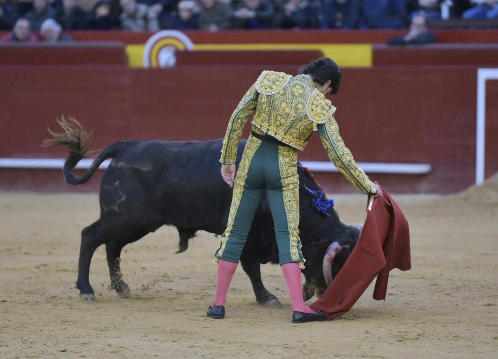 Javier Camps jugaba en casa. Un guapo verde botella y oro de estreno. El corte de pelo sorista y en los tendidos amigos, familia y vecinos de Massamagrell, Foios, Museros o Albalat. ‘Hostelero’ manifestó debilidad en sus apoyos desde el mismo inicio. El Melli aprovechó por crinolinas su turno de quites. Y Javier Camps se esmeró en administrar las fuerzas del novillo. Muy despacio todo. Mejor en redondo que al natural. Camps tuvo que torear también sin toro. Bordó varios pases de pecho a cámara lenta y la estocada resultó efectiva. Una oreja merecida. Por cierto, entre lo mejor de la tarde, el segundo par de banderillas del valenciano del Parque Alcosa José Ramón Maestro.