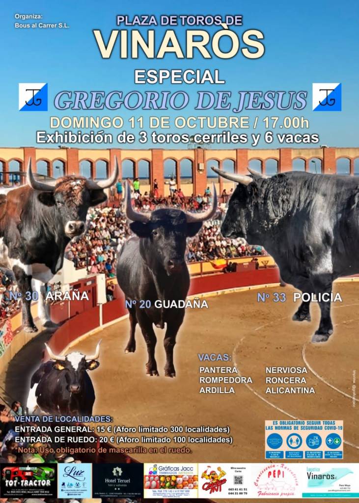 Pero el primer paseíllo siete meses después se celebrará en Vinaròs de la mano de la empresa de Gregorio de Jesús en colaboración con Escuela Taurina de Castellón. Será una novillada sin picadores que goza de todo el interés. Solo podrán acceder 800 personas, asistencia máxima autorizada.