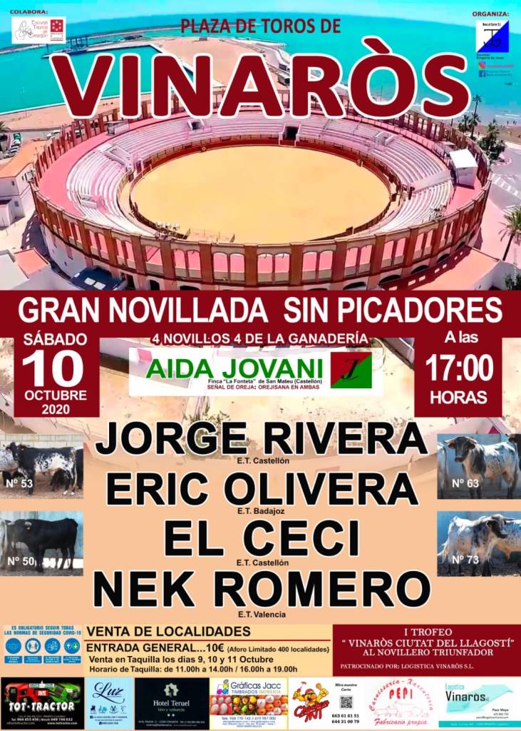 Jorge Rivera y El Ceci de la Escuela de Castellón, Eric Olivera, de Badajoz, y Nek Romero, natural de Algemesí y alumno de la Escuela Taurina de València, con erales de la ganadería de Aida Jovani de Sant Mateu. Un novillada para la ilusión, para reencontrarnos, para decir que aquí estamos, pese a que Mónica Oltra con Pacma mediante ha intentado ejercer su tradicional bullying para con el sector taurino. A Mónica Oltra le gusta marginar todo lo que huela a tauromaquia. De las muertes e infecciones en las residencias de ancianos suele largar menos. Los malos políticos siempre se hacen los longuis con los problemas que les atañen directamente.
