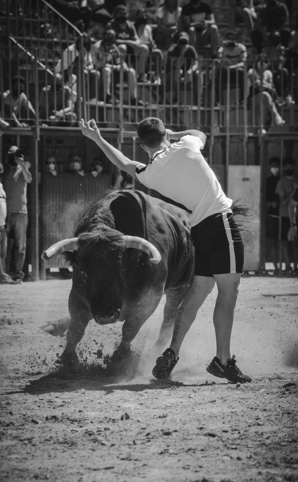 «Yo creo que tendría 14 años. Fue en Massalfassar. Un toro de Giménez Indarte que iba corriendo por la calle sin más y recuerdo verlo llegar, yo estaba en medio y me eché a un lado, me aparté simplemente. Con 16 años ya estaba en la arena poniéndome a la salidas de los toros y pegando quiebros. Pero es algo que no recomiendo a nadie. Con 16 años nadie está preparado para ponerse delante de un toro de 500 kilos. De hecho a mí me cogió un toro con 16 años, a 200 metros de mi casa. El disgusto de mis padres y del pueblo en general, pues imagínatelo. Con 16 años hay que estar en las capeas, con vacas….»