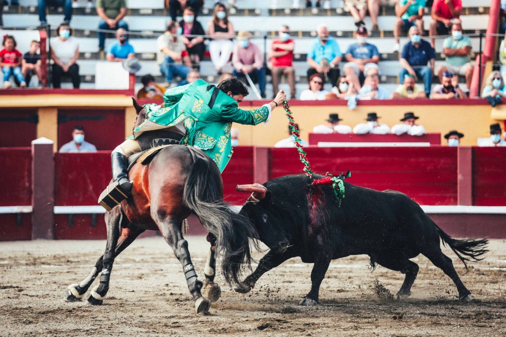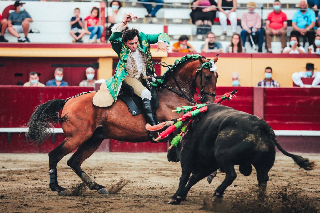 Y lo hizo desde el primer momento, cuando centró la atención del astado y colocó el primer ferro en la suerte de portagayola. La faena prosiguió in crescendo, siempre con el cavaleiro aprovechando la buena condición de toro para ejecutar las suertes con brillantez, destacando especialmente en un ferro de palmo y en un par de banderillas que hicieron que Rouxinol hijo saliera de la arena en apoteosis.