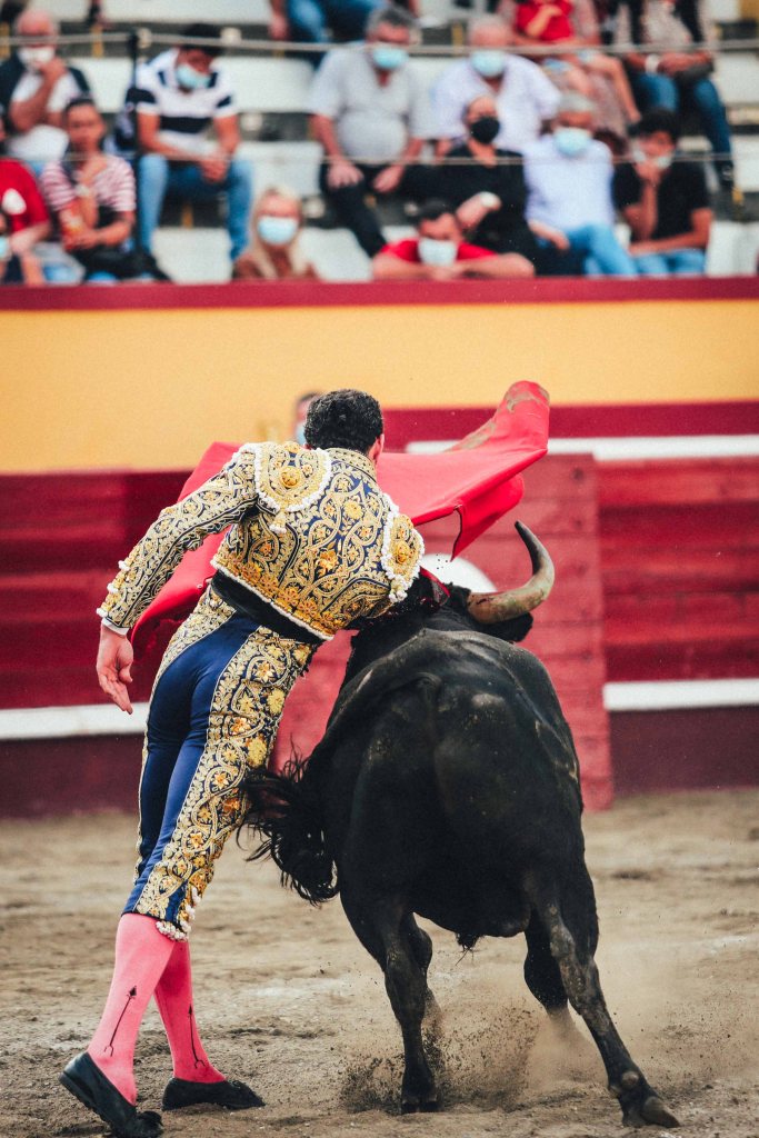 También David de Miranda se encontró con el mejor toro de su lote en segundo lugar, en este caso un ejemplar de José Albino Fernandes, de encaste Domecq y procedencia Falé Filipe, que tuvo virtudes como la fijeza y la humillación a ras de arena. El diestro onubense desplegó una faena basada en la mano derecha, aunque también probó el pitón izquierdo, aprovechando la gran nobleza del animal y logrando los mejores momentos con un toreo de cercanías muy templado y relajado, aunque a costa de tres volteretas sin mayores consecuencias.