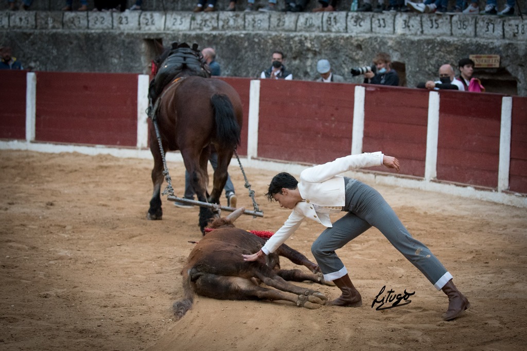 Borja Gimeno, de Sedaví, se presentaba en público y se fue a porta gayola. Valor, desparpajo y ganas de ser torero, solo dos pinchazos le privaron de los máximos trofeos. Al natural dejó sus mejores muletazos.