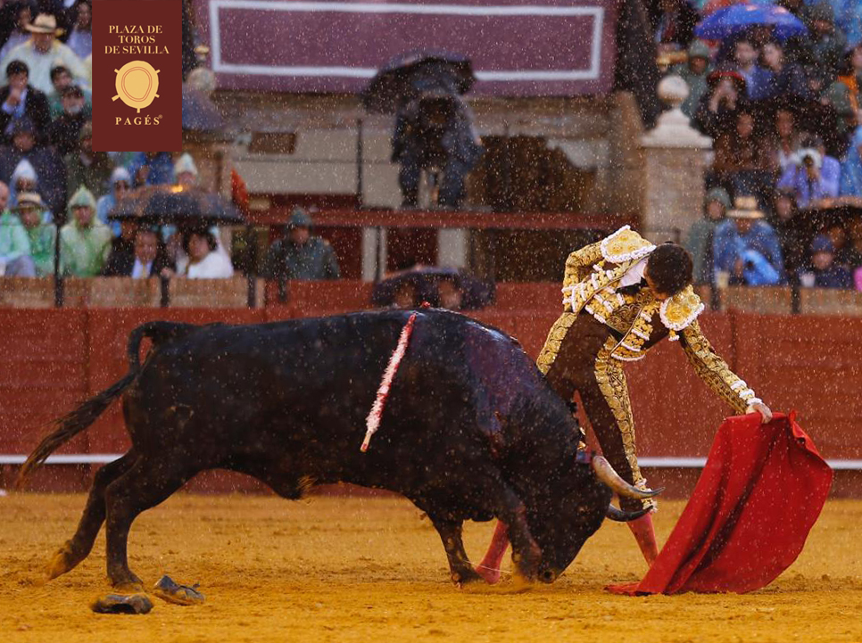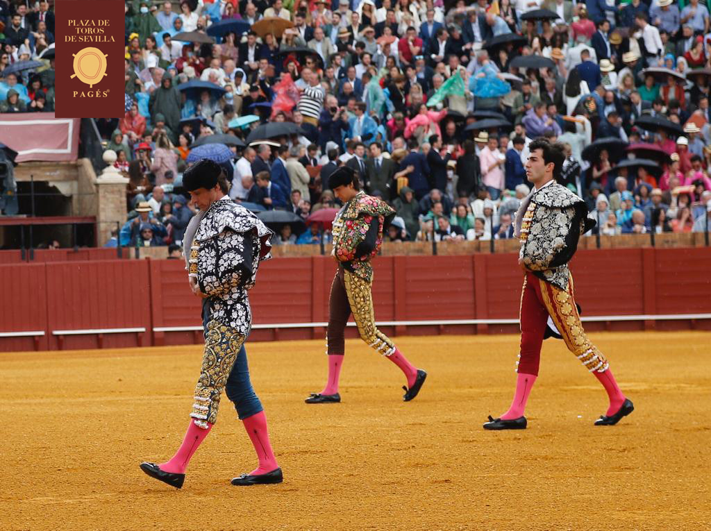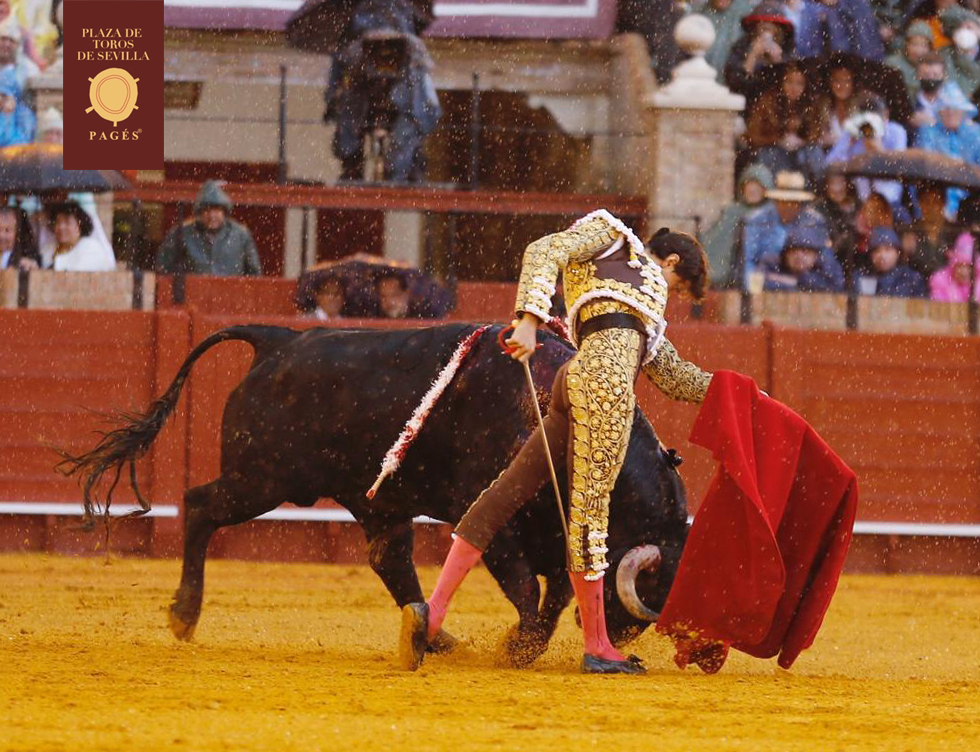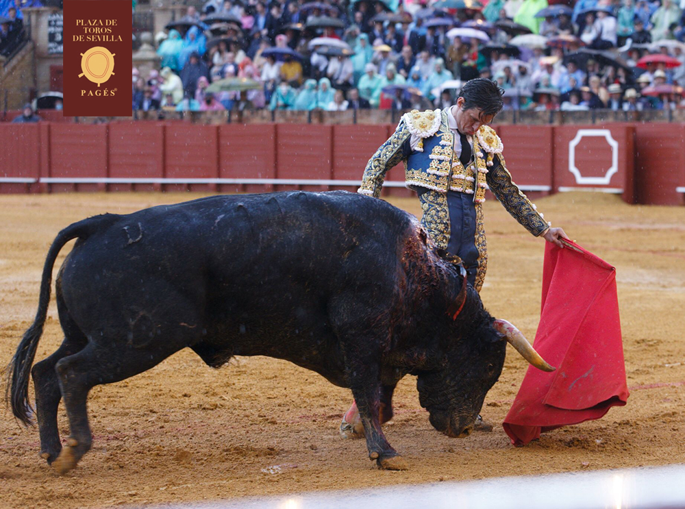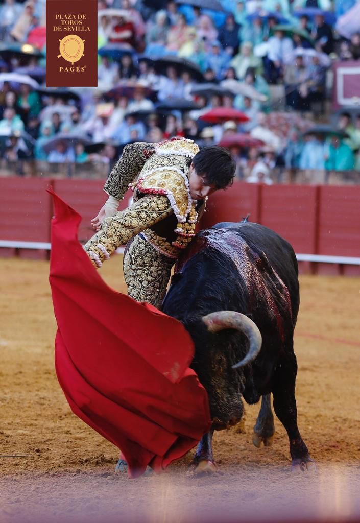 El cartel del año hizo historia en Castellón y se hace inolvidable en Sevilla al lanzar por la Puerta del Príncipe a Tomás Rufo, recién llegado al toreo y ya consagrado en figura. Tarde inclemente, de tormenta y albero embarrado, donde al final brilló el toreo en amplia paleta, frente a una corrida de Victoriano del Río de caracteres variados. Del mansurrón al geniudo, pasando por el brusco y el almibarado. El Juli y Roca Rey, ahí es nada, vieron como se coronaba Tomás Rufo en Sevilla.