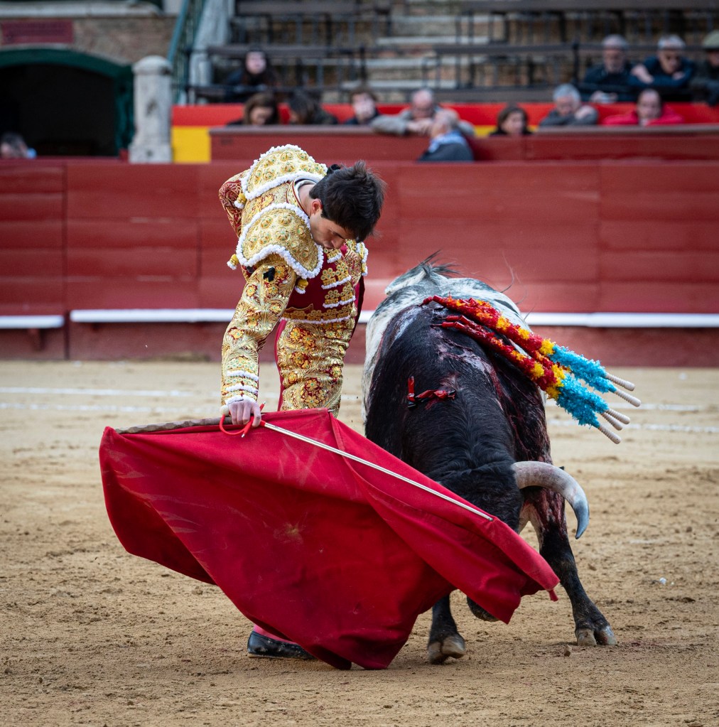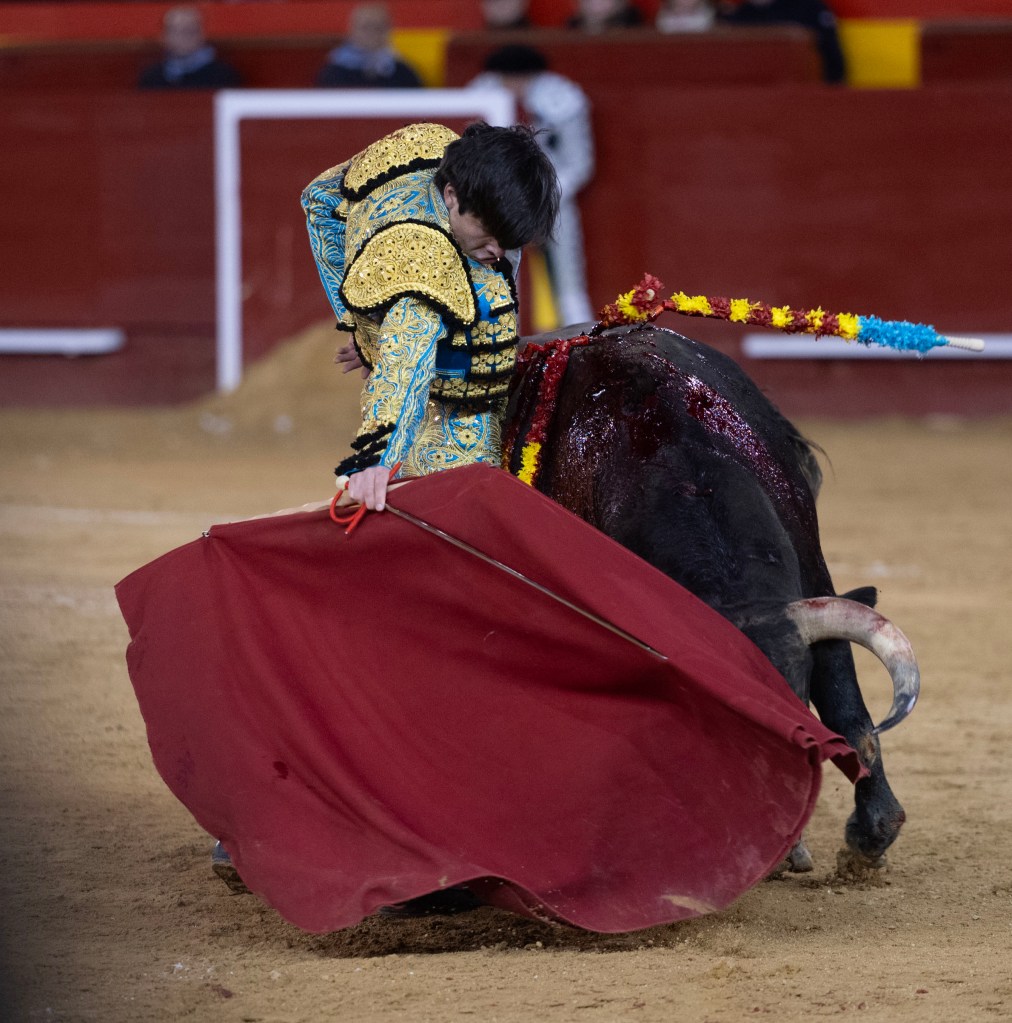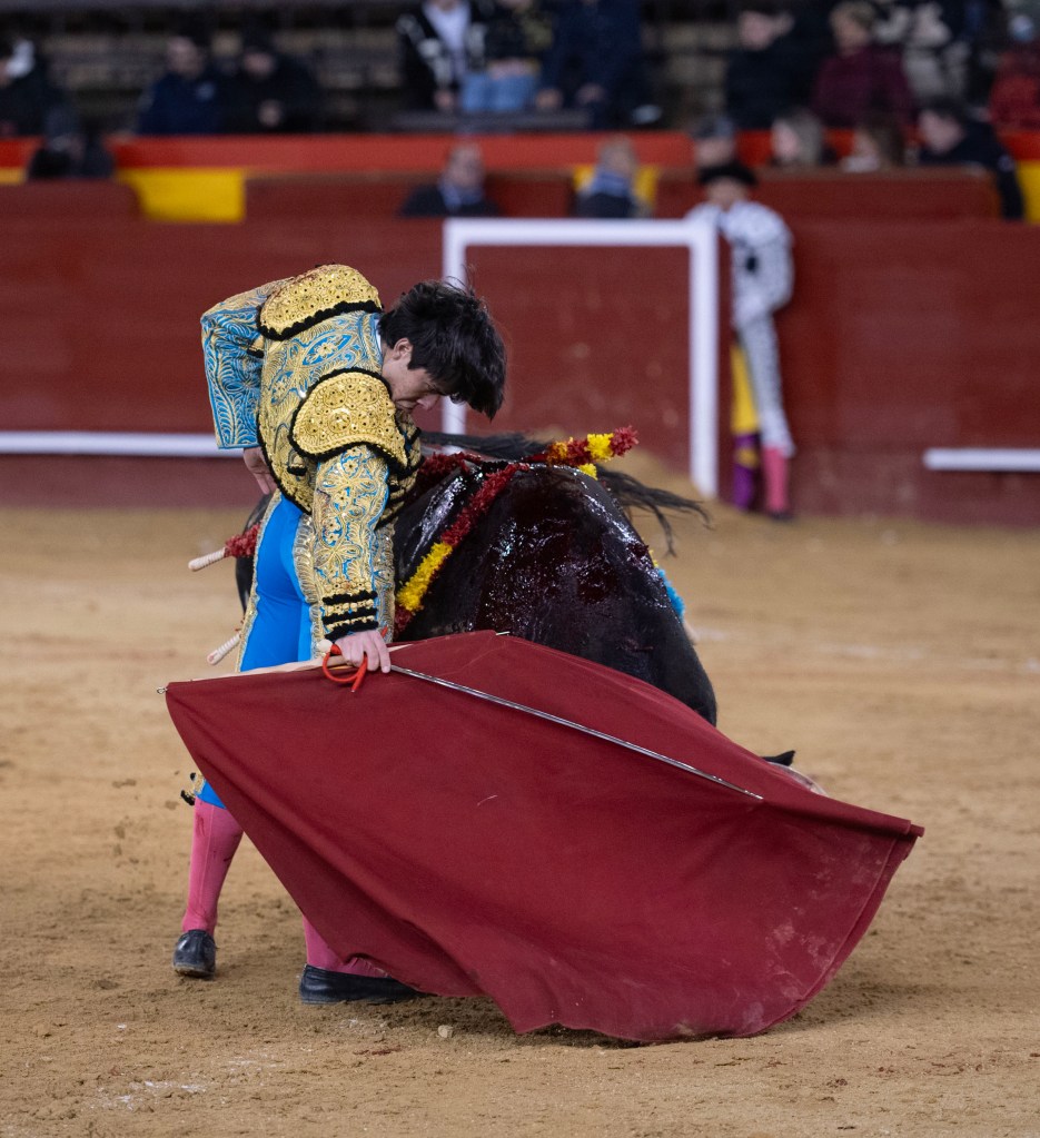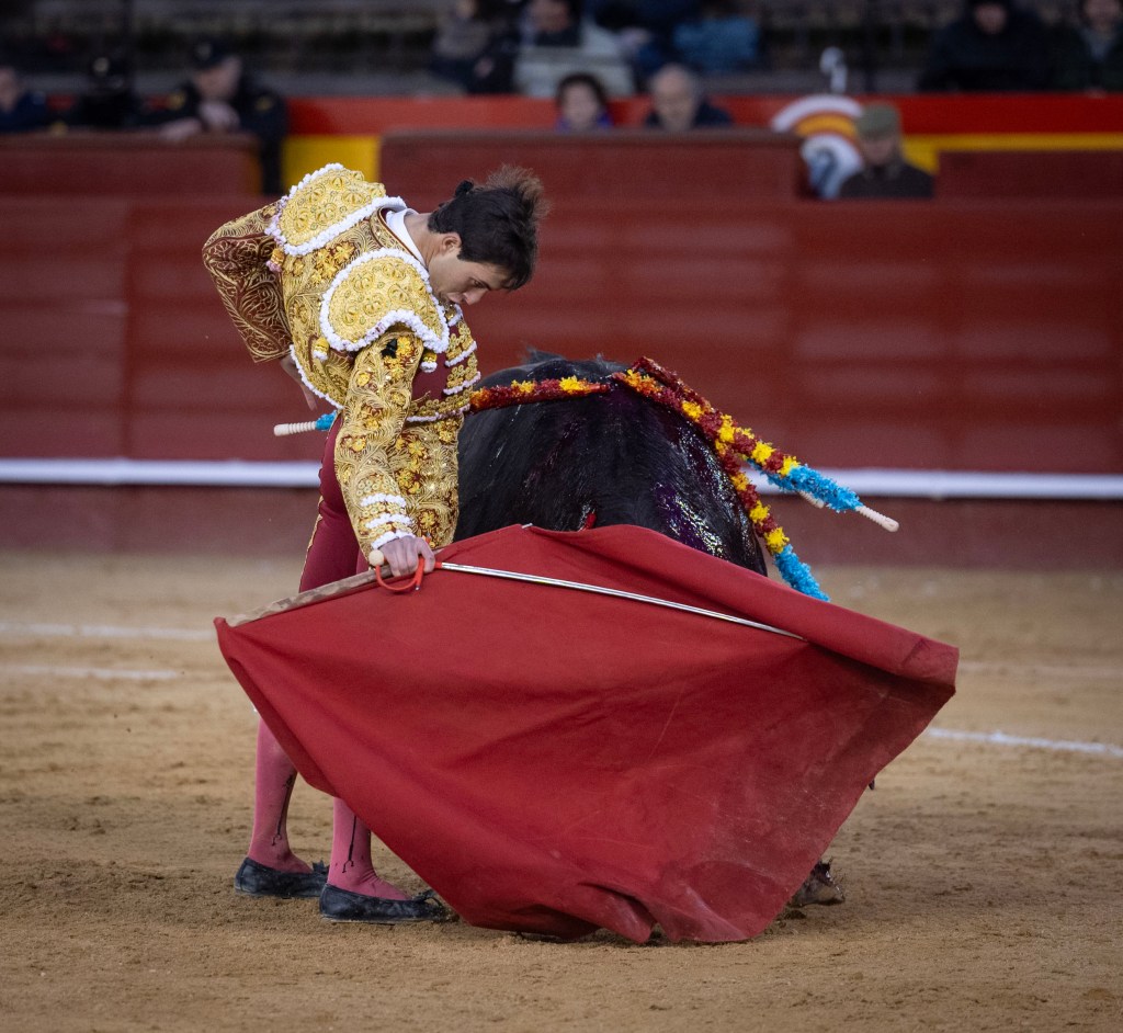 Al buen toreo sobre la diestra faltó una serie más con la zurda, donde faltó acople, pero también se dibujaron dos naturales bien encajados. Una serie más habría redondeado. Luego venía la explosión: las bernardinas se sucedieron sin espacio entre toro y torero, Navalón ahí ligó una arrucina y a la vuelta uno de las flores torerísimo, más un desplante de rodillas de puro líder. La estocada quedó algo tendida pero fue suficiente. Cortó una oreja con fuerza, le pidieron dos que negó el palco y Samuel Navalón decidió dar dos vueltas al ruedo.