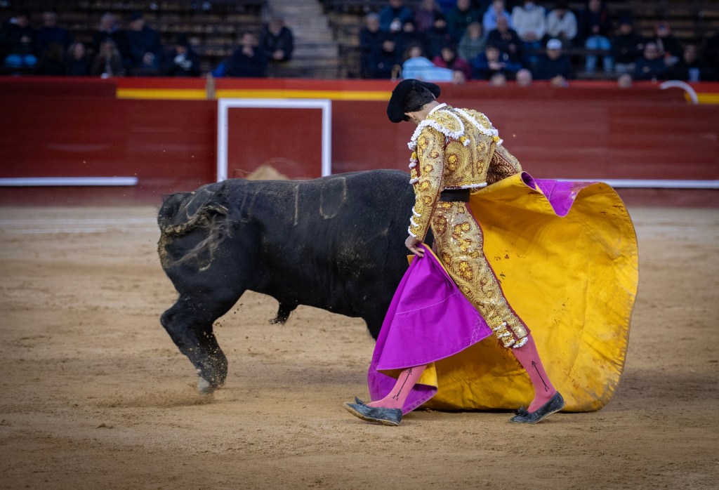 Quien más y mejor partido sacó fue Alejandro Peñaranda, que se ha reivindicado en estupendo muletero. Su primero era de pelo castaño y estaba muy bien hecho. Lo recibió a porta gayola. El novillo, muy justo de raza, luego duró una enormidad en la muleta de Peñaranda. Muy bien colocado, por ambas manos prolongó y cuidó las embestidas, perfectamente embarcadas en la panza de la muleta. El cuarto sacó cierta mansedumbre, la necesaria para desordenar la lidia en los primeros tercios, la justa para ordenarse y en la muleta y tener recorrido. De nuevo el temple manchego de Peñaranda, que se ajustó por ambos pitones. Y la espada también le funciona certera. Se vuelca. Las dos estocadas incluso le quedaron contrarias. Cortó una oreja a cada novillo, aunque en el segundo se prolongó demasiado la muerte sin hacer uso del descabello y escuchó dos avisos. Alejandro Peñaranda ya puede decir que de novillero salió dos veces de forma consecutiva por la puerta grande de València.