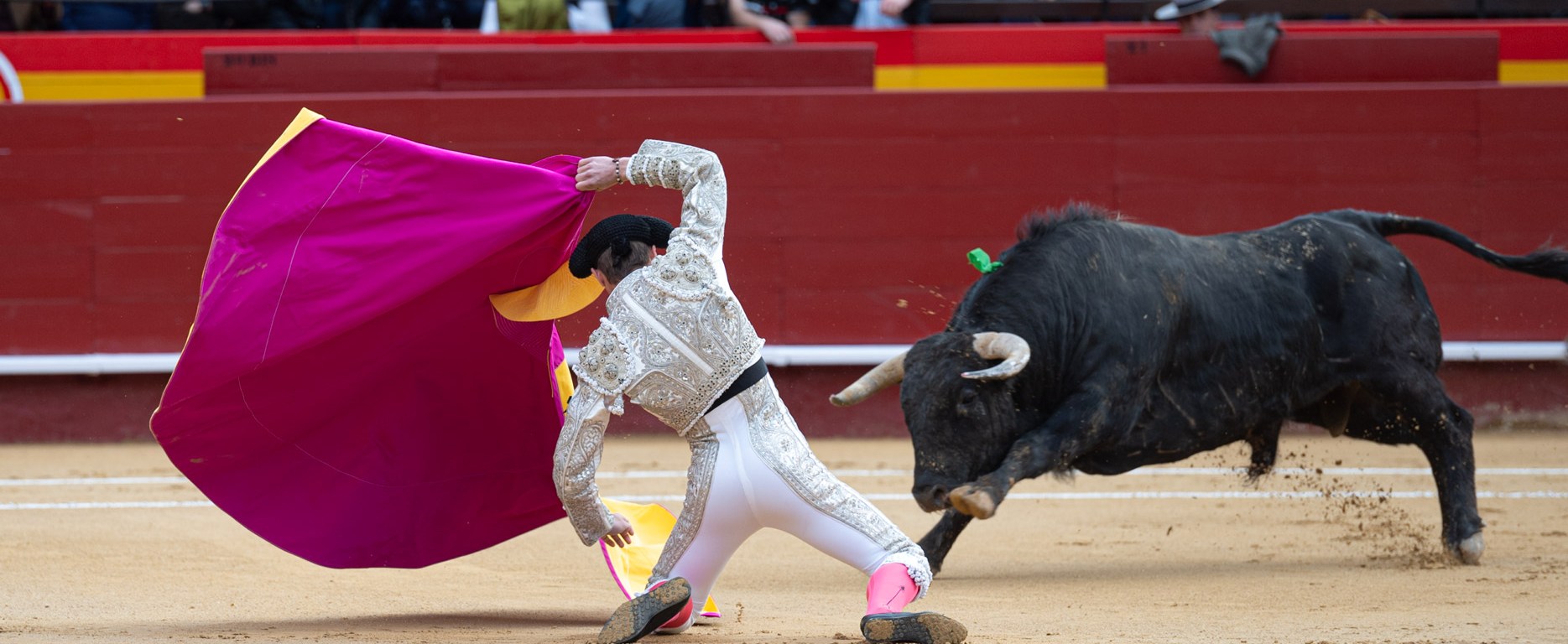 Jordi Pérez se salió con el novillo a los medios y tuvo capacidad para hilvanar un vistoso y aprerado quite de frente por detrás. El inicio de rodillas en los medios, con el pase cambiado y el poderoso toreo ligado sobre la diestra. Capacidad para embarcar las buenas embestidas del Fuente Ymbro, sobre todo cuando más distancia ofreció. Muy mandó. Buen trazo al natural. La faena fue larga por pura ambición y clarividencia. Sin aburrirse, tirando del novillo cuando se puso más en corto. Un arrimón para torear largo. Las manoletinas finales. Pero otra vez la espada y luego el descabello para emborronar todo. Tal vez se ha visto la mejor versión de Jordi Pérez ‘El Niño de las Monjas’, seguramente se le ha esfumado una puerta grande en Valencia.