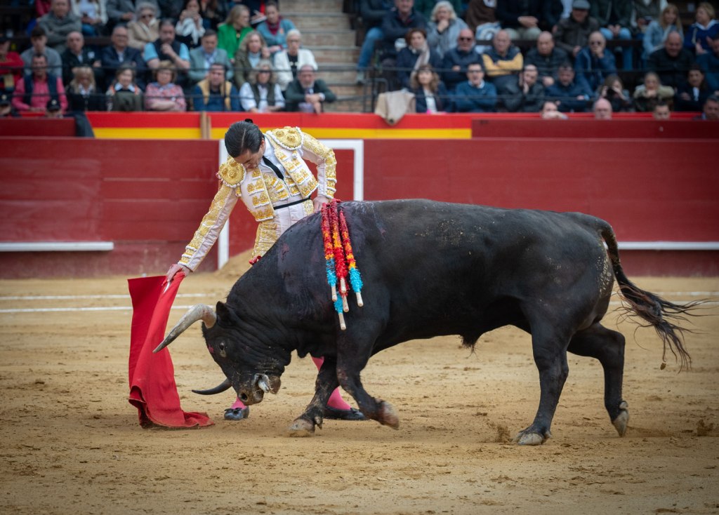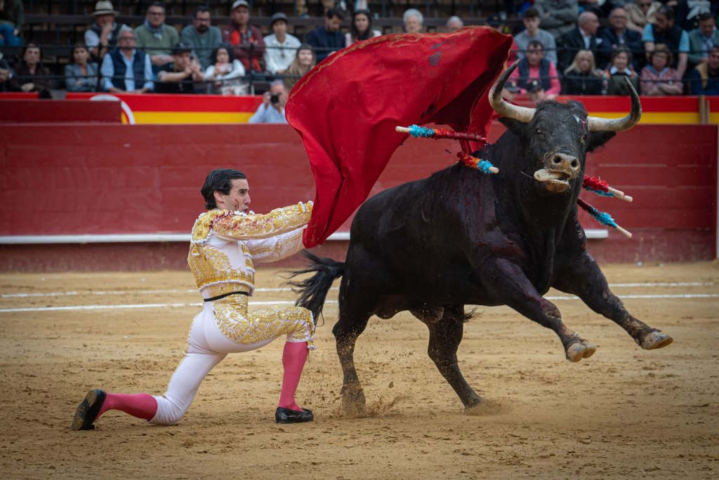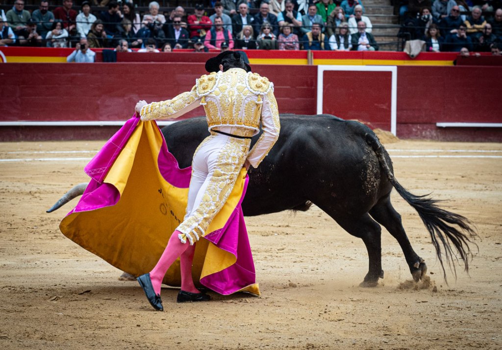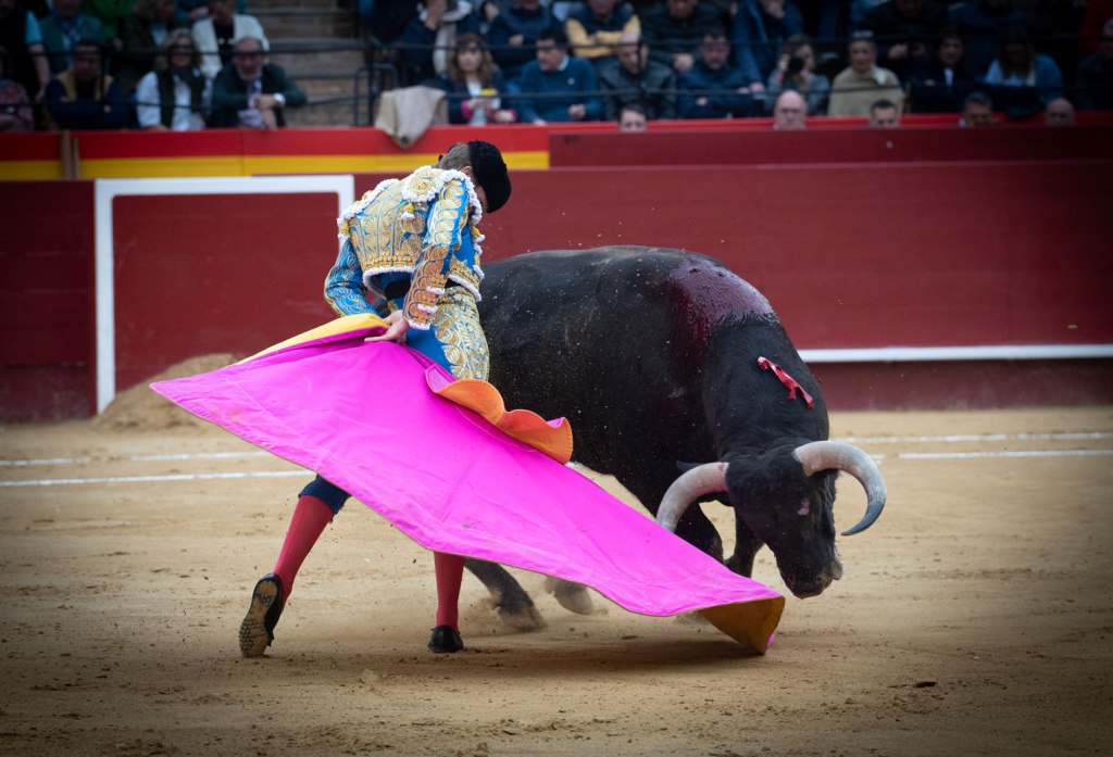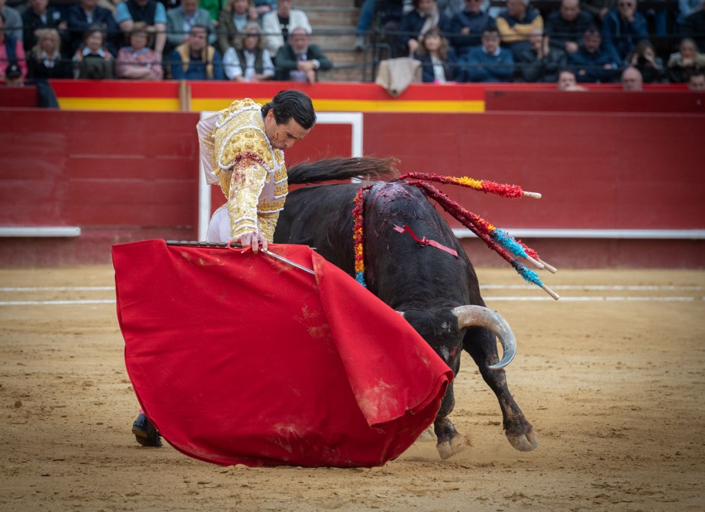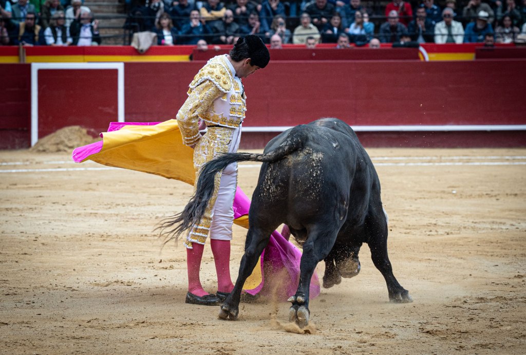 El caso es que ha salido ‘Puntero’ al albero valenciano, abriendo plaza, y hemos torcido el gesto. Enseñaba las puntitas y abría algo la cara, la hechura se afeaba y se antojaba algo terciado. Pero luego, venía que era un toro hondo, cuajado atrás. Y nos íbamos convenciendo unos y otros. Su lidiador, Cayetano. Otra pregunta: ¿Qué hacía Cayetano anunciado en Fallas?