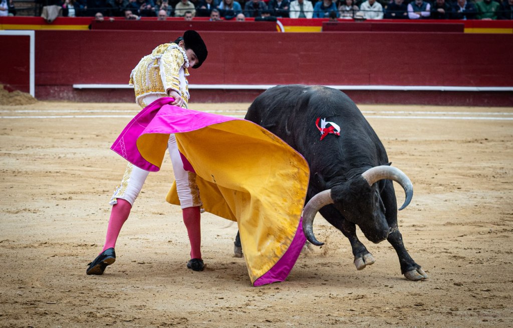 Juan Ortega dejó un saludo capotero que dará para muchos stories y reels en Instagram y TikTok. Probablemente han sido las verónicas de esta Feria de Fallas. Por la mano diestra ha detenido el tiempo por dos veces. Verónicas ligadas, sin dejarse ir demasiado, pero acompasadas con todo el cuerpo. Sin perder ni un paso. Solo ganando uno adelante. El toro se templa. No le sobran las fuerzas. El toro es recogido de pitones, fino, largo y alto de cruz. Se llama ‘Poderoso’. También lleva el viejo hierro del Duque de Veragua. Ante el temple, clase y bondad, la intermitencia de un Juan Ortega que no acaba ordenar una serie completa. Hay muletazos buenos seguidos de enganchones y momentos de cierto amontanamiento hasta que se ha diluido todo.