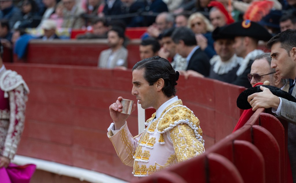 El toro se encela en el peto, se mueve con clase. Lo lidia Joselito Rus. De aquí para allá el toro. Cayetano se permite hasta hacerle dos comienzos de faena. Primero lo empieza en los bajos del cuatro, y al primer intento al natural, el aire desbarata la acción y Cayetano opta por resetear la faena. Esto nunca lo había visto. Entonces ha movido los terrenos, y en los bajos del 10 se ha sentado en el estribo para volver a comenzar y seguir con muletazos de rodillas a la orilla del sol. Como la peli ‘Atrapado en el tiempo’. Un dejavu.