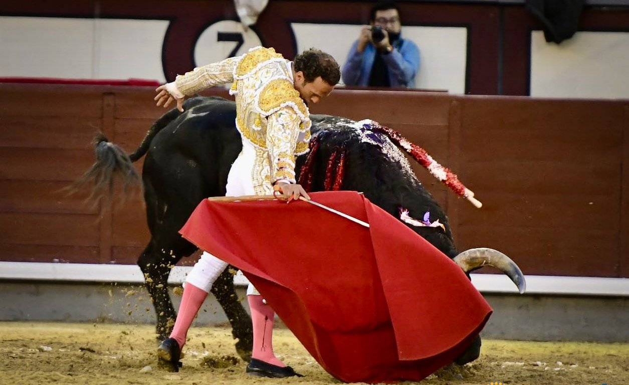 El tercero, que se lleva una ovación por lucir un pitón derecho así de astifino, embiste de salida muy con la cara por arriba y las manos por delante. Le traga en un emocionante recibo Gómez del Pilar. Son lances a la verónica con los pitones por arriba de la montera y luego, por abajo, para ganar la acción hasta más allá de la segunda raya. El fondo del toro ahí escasea. En varas hay tres entradas, solo la primera agarra un puyazo en regla. Emociona el galope desde lejos en la tercera vara. El toro tiene pies, la cara a media altura y gañafón al final. Gómez del Pilar, sobre la diestra, intenta ganar la acción. Crear el estímulo y mandar sobre la embestida y la voluntad. Tiene emoción. Ajusta altura, por momentos templa. La embestida se le duerme. Por el izquierdo sosea cada vez más y se agota. Pinchazo, aviso. Otro pinchazo y estocada tendida, caída y atravesada.
