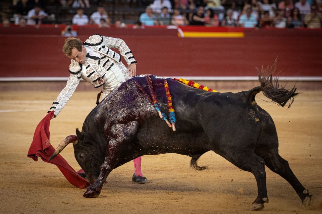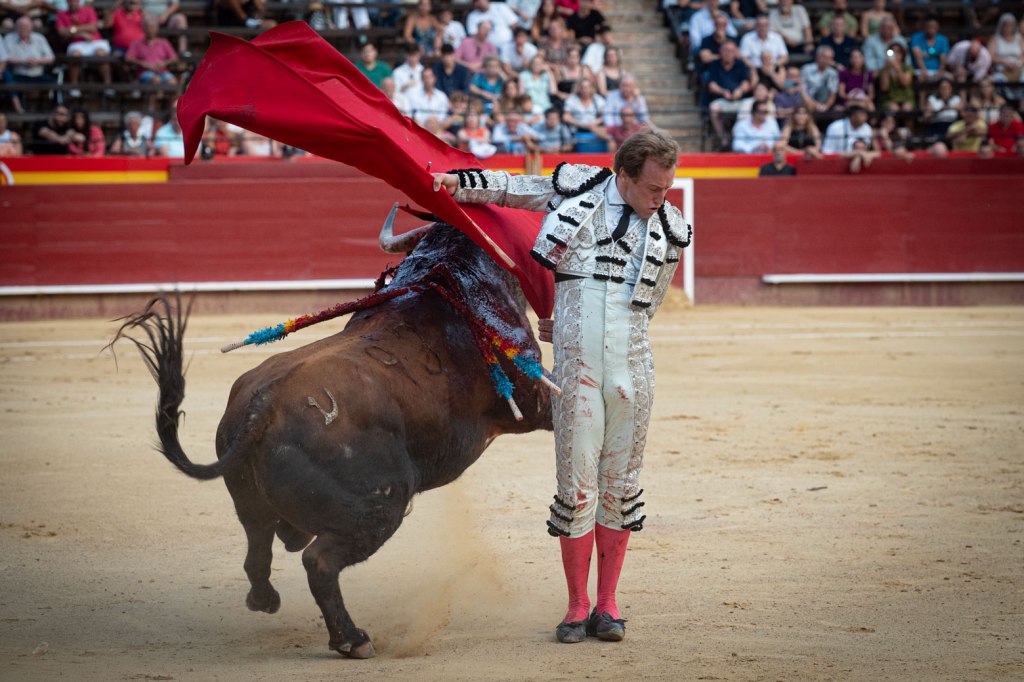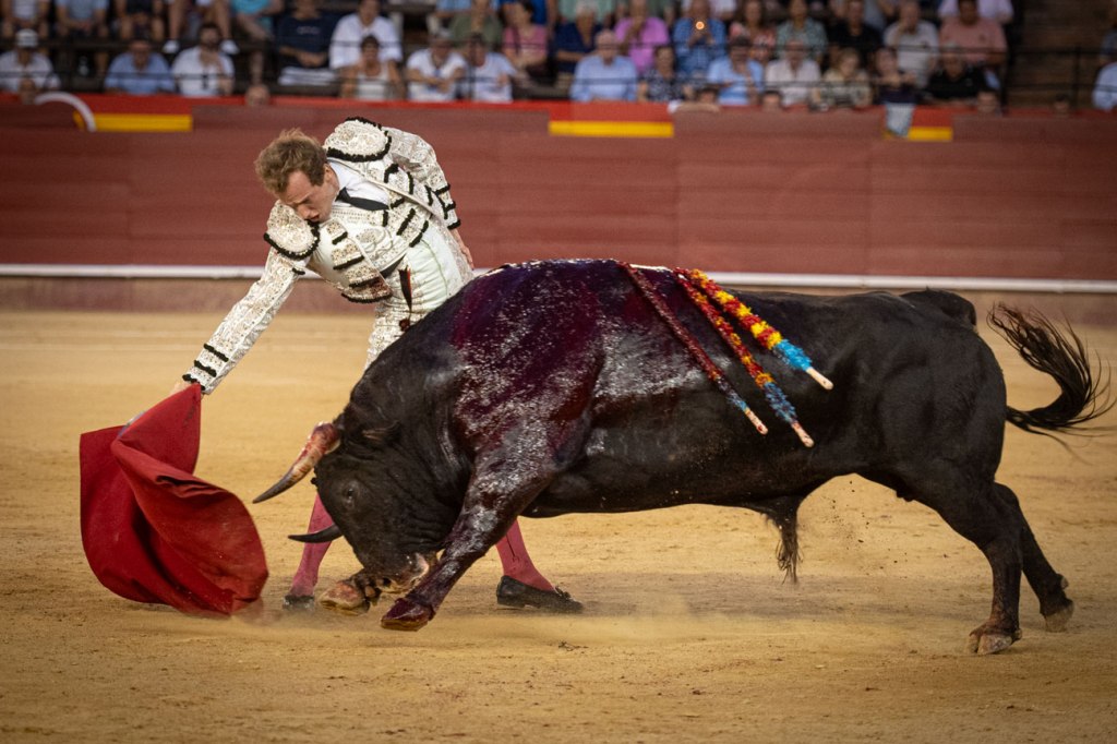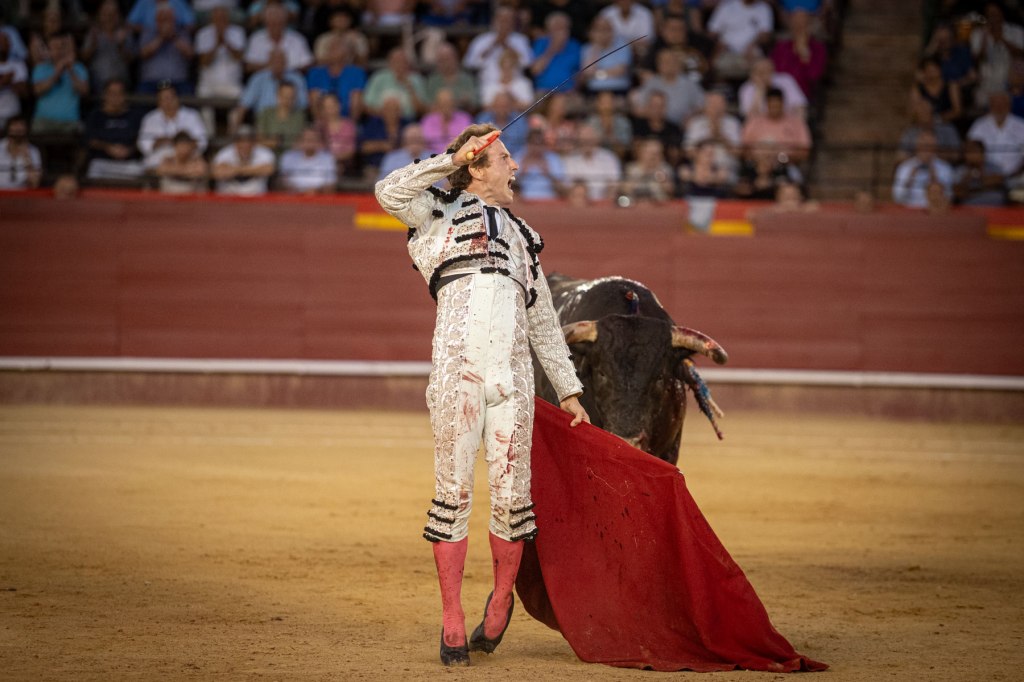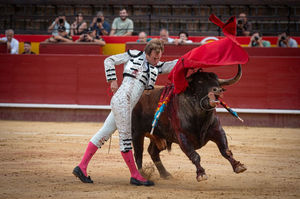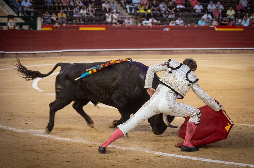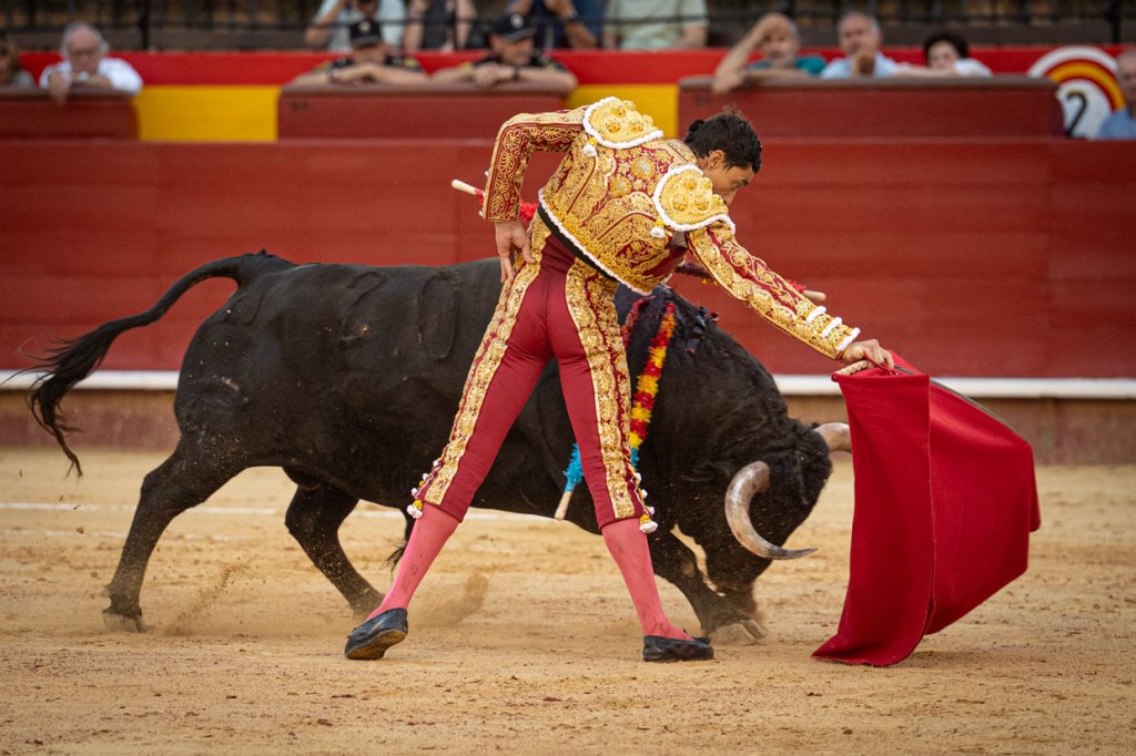 ‘Soñador’ abrió plaza para Paco Ureña. Toro bajo, fino de cabos y de vientre, musculado, con cuello, badana y seriedad. Acaramelada la cuerna y las puntas hacia arriba. Una pintura. Más guapo aún cuando embiste y se estira en el capote de Paco Ureña. Lo comienza por estatutarios. El toro está limitado en su poder y con su puntita de genio. Se derrumba hasta tres veces en una faena en la que Ureña alcanza hondura en algún natural y de rechazo sueltos. Entre las pocas fuerza y ese geniecillo el temple se complica.