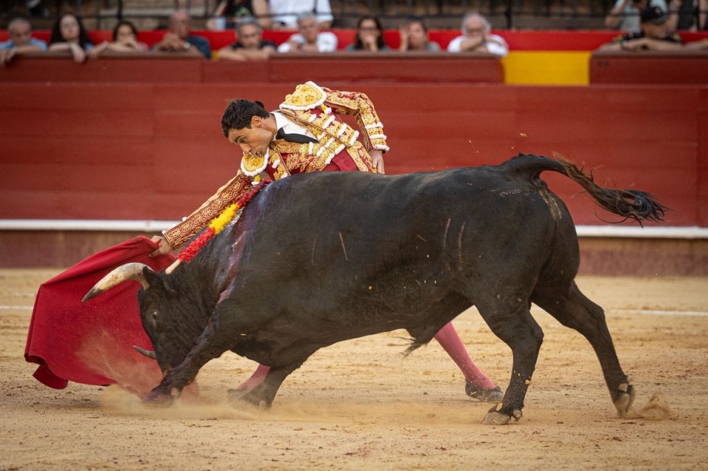Torcía la tarde y la Feria de Julio hacia su fin. Ya casi era momento de recoger las banderas. Recuerdo de crío los días así, cuando por el tejadillo uno se iba echando las banderas al hombro, señal de que mañana no habría toros. El lenguaje de los signos del coso de la calle Xàtiva. La breve merienda cena en los tendidos pasaba veloz: para que merienden a dos carrillos los del callejón se han inventado regar la plaza. La esperada corrida de Santiago Domecq no terminaba de romper. Casi veinte años sin lidiar una corrida por València, los triunfos recientes en Sevilla o Madrid habían señalado el cartel con fosfi de muy interesante. Y entonces salió ‘Escondido’ del oscuro chiquero. Los focos ya hacían centellear los vestidos de torear. Guapa la expresión, amor a primera vista. El gesto despierto. Más escurrido de atrás. Román lo esperó sin atropellos. Recogido de capa dando tiempo y espacio. En varas aprieta el toro con los riñones al primer encuentro y el segundo lo toma con alegría y franqueza. Del mismo chocazo ya se mete las cuerdas, pero se mide al toro. La casta ha despertado.