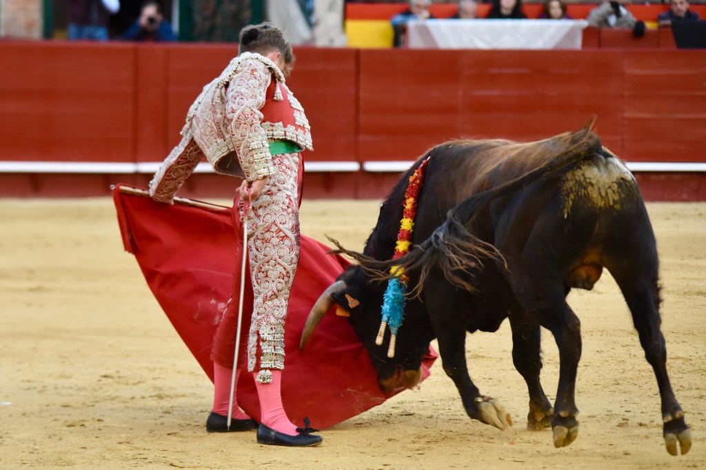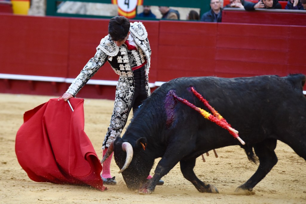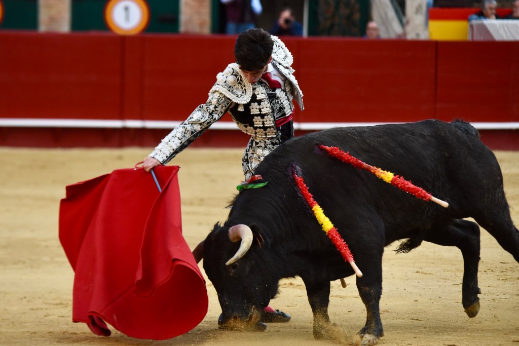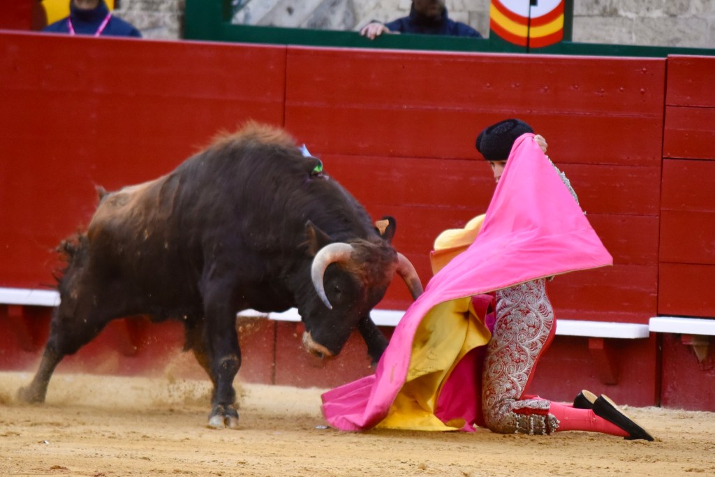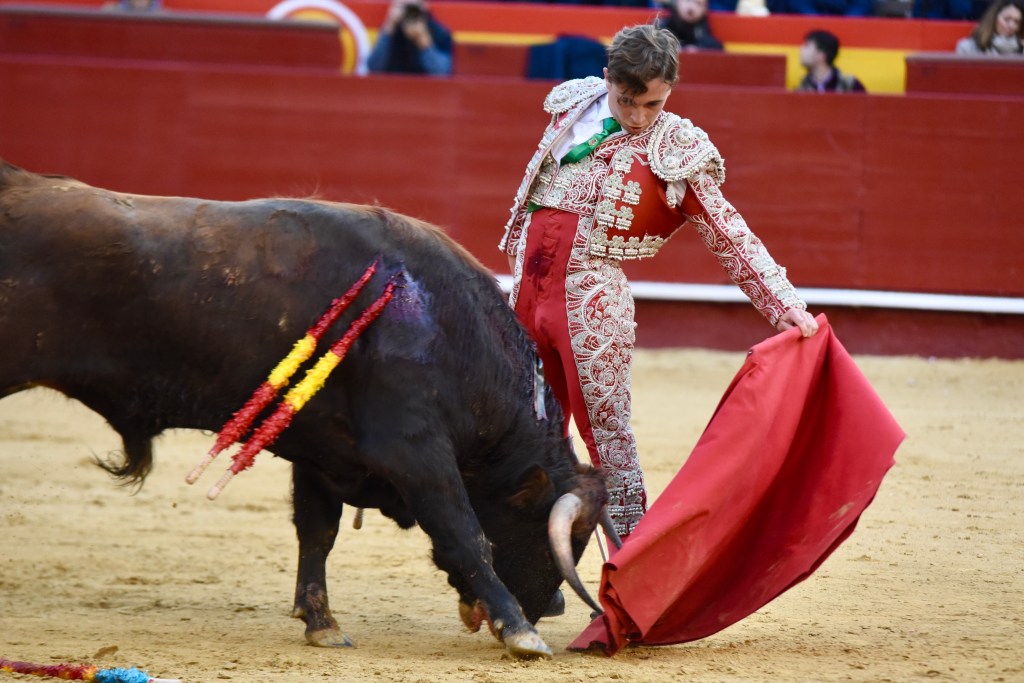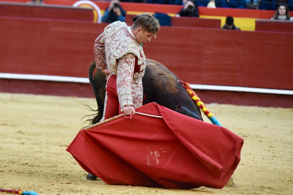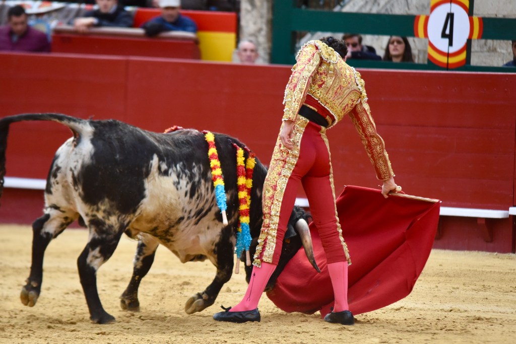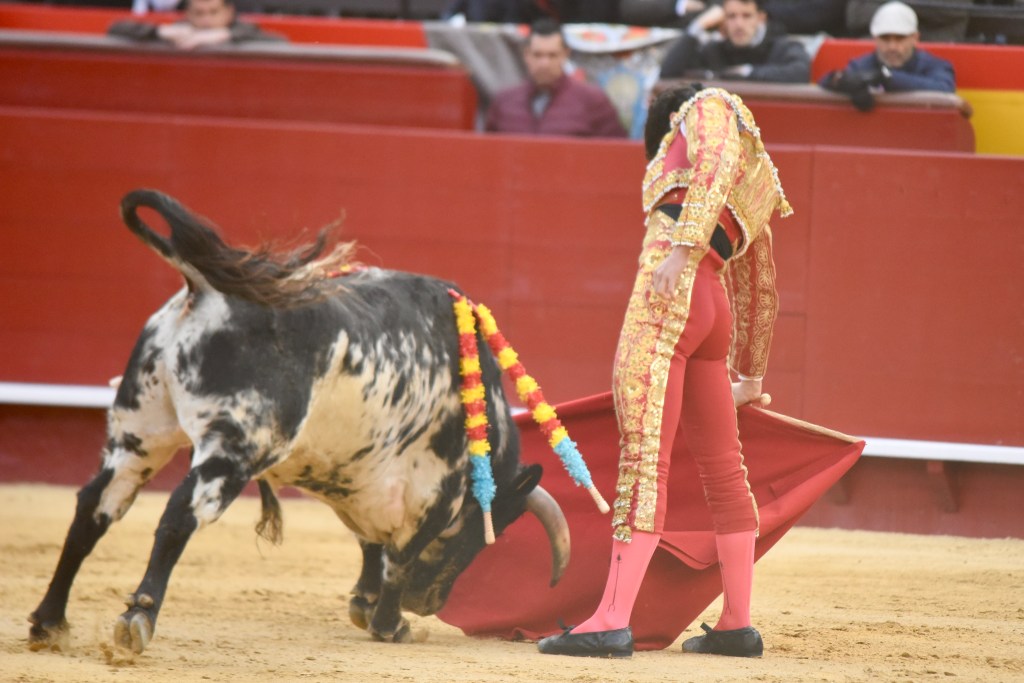 Buen oficio de Nicolás Cortijo, de Albacete. Dándole suavidad a los vuelos a la hora de torear. Embebiendo bien el viaje de un novillo bastante parado. La espada se le atragantó.