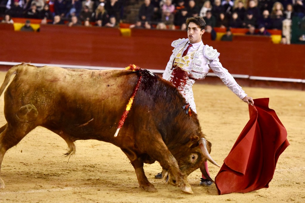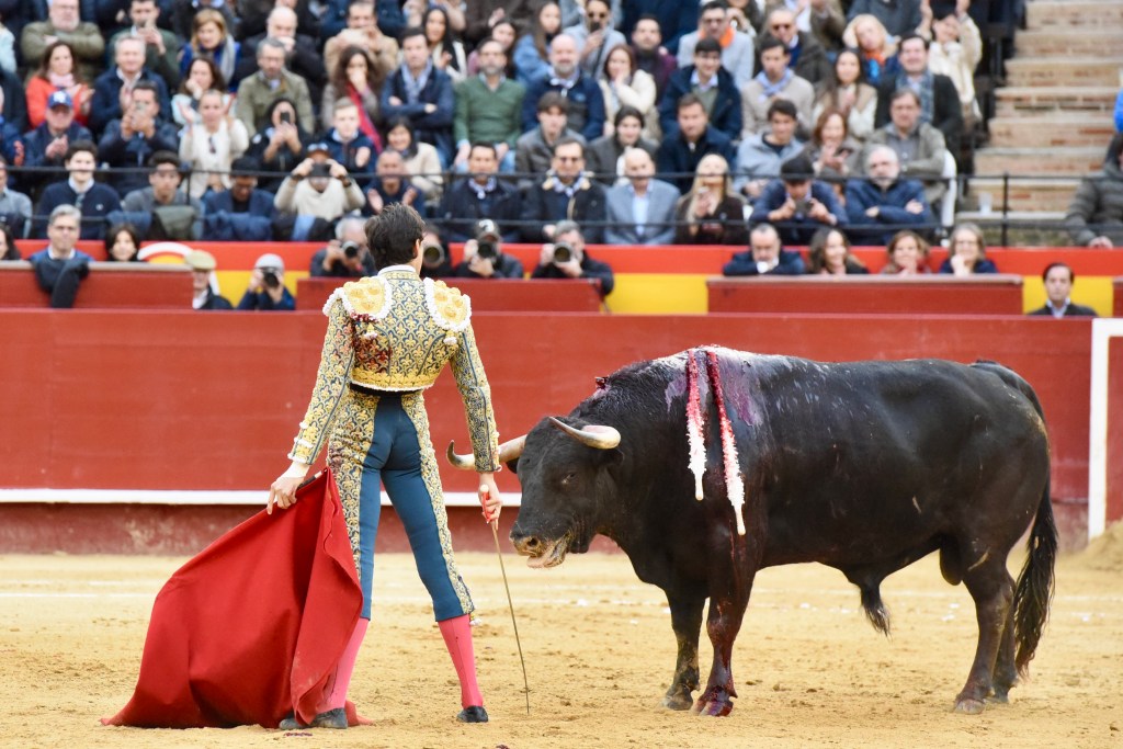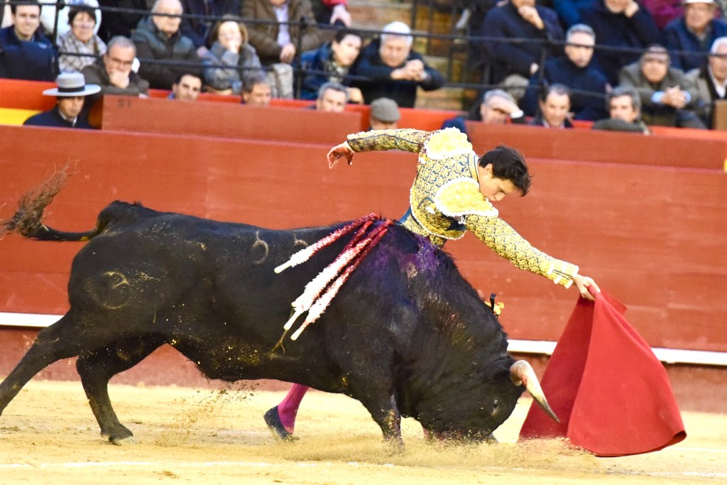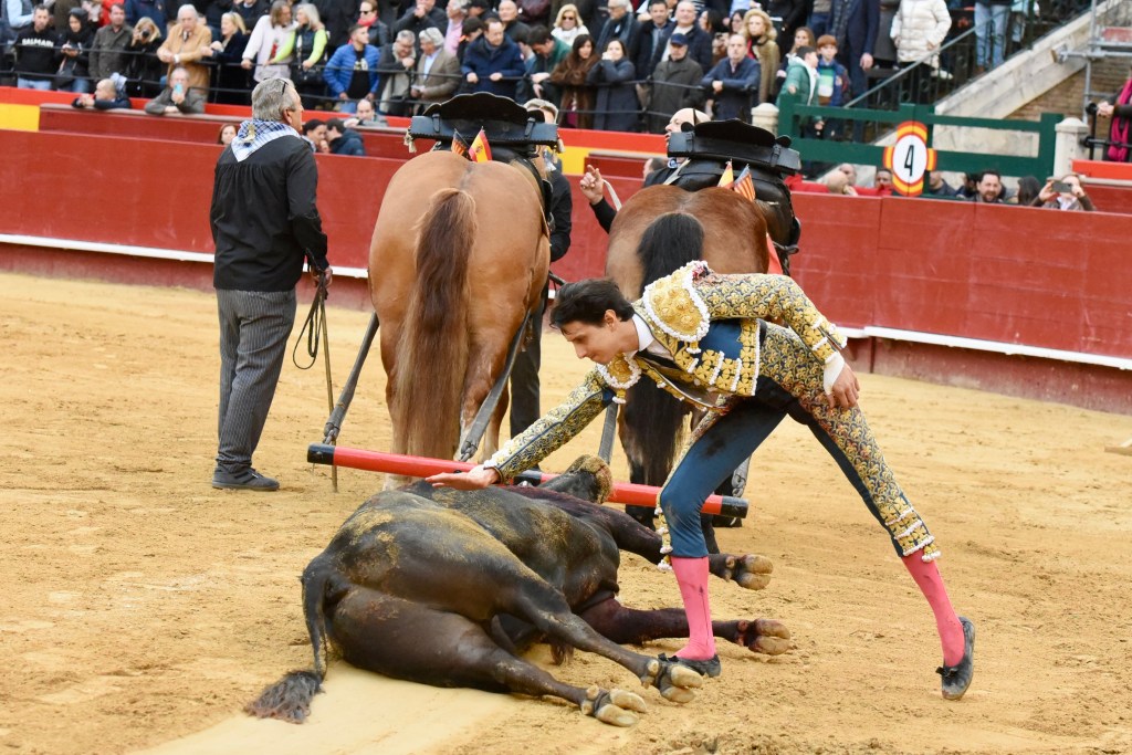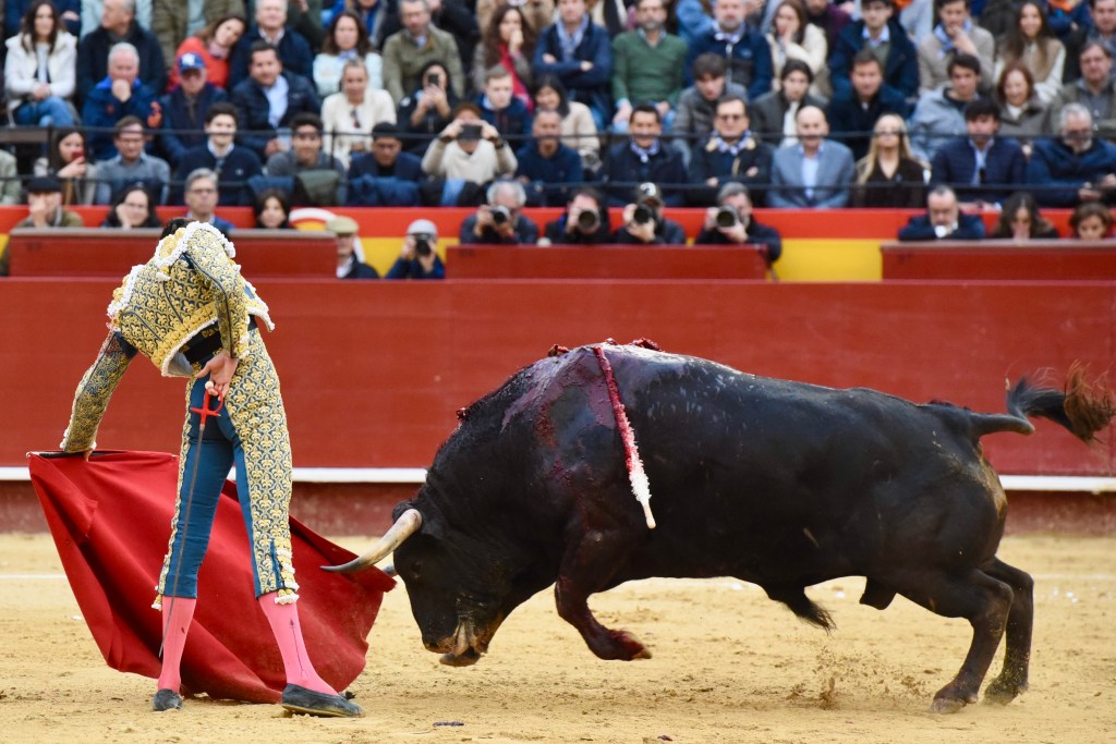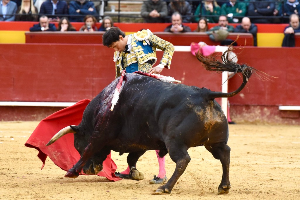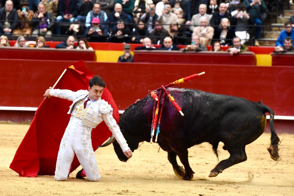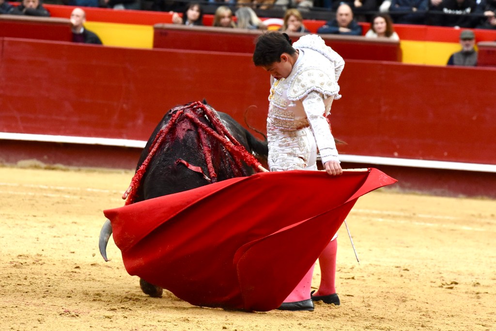Alejando Chicharro se ha doctorado con ‘Alabardero’ 140, de Victoriano del Río. Nacido para el recuerdo en febrero de 2020. Un superclase. Reunido, bajo, rematado, precioso por delante y lo mejor, su fondo bravo. Vaya regalo para tomar la alternativa, Alejandro Chicharro. Será difícil que veamos torear a la verónica estas Fallas, así como lo ha hecho Chicharro. Mecido el capote, muy despacio, con las palmas hacia fuera. Muy limpio el lance, muy toreado, ligando con los pasos juntos y ya el cuerpo perfectamente asentado. Qué pena que Chicharro aún no tenga influencers que lo pregonen. Por cierto, precioso el vestido de la alternativa: El bordado, blanco y plata, original.