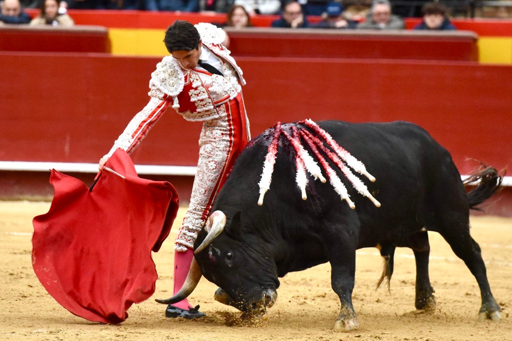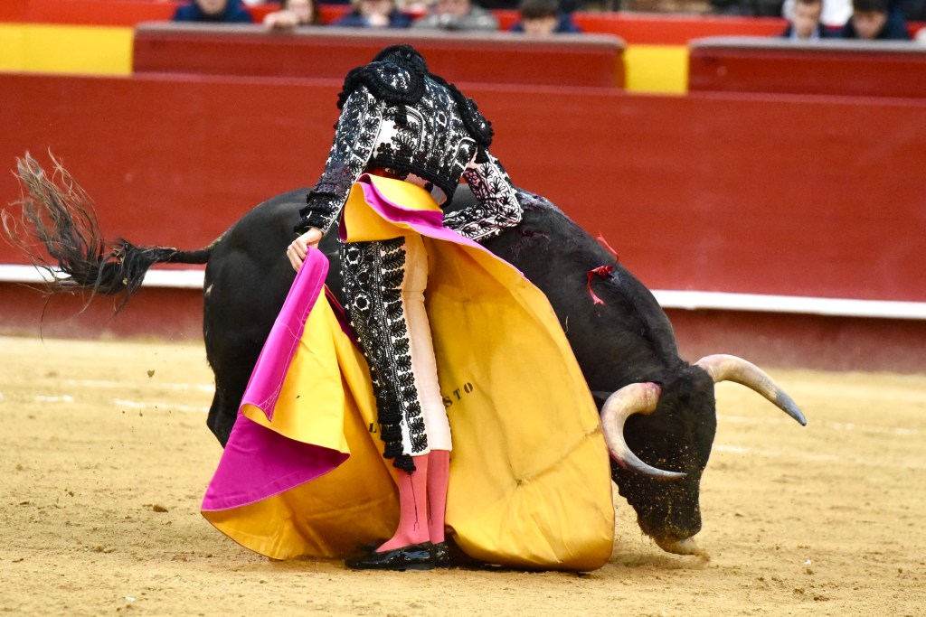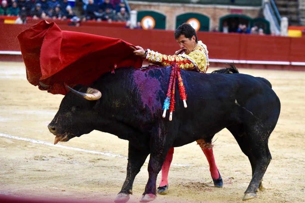 Emilio de Justo vino vestido como el día en Mordorlencia. De gris, que es lo que sale de mezclar un blanco y azabache que solo de verlo la tristeza superaba a la de cualquier blue monday guiri. Esfuerzo tras esfuerzo. El freno de mano echado. Mucha voz, mucho ajetreo. Su primer toro pesaba. Le costó verlo metido y convencido en su muleta. Como los tres primeros, tuvo fijeza en el peto y no mal estilo. En la muleta se desordenó y De Justo no logró el acople.
