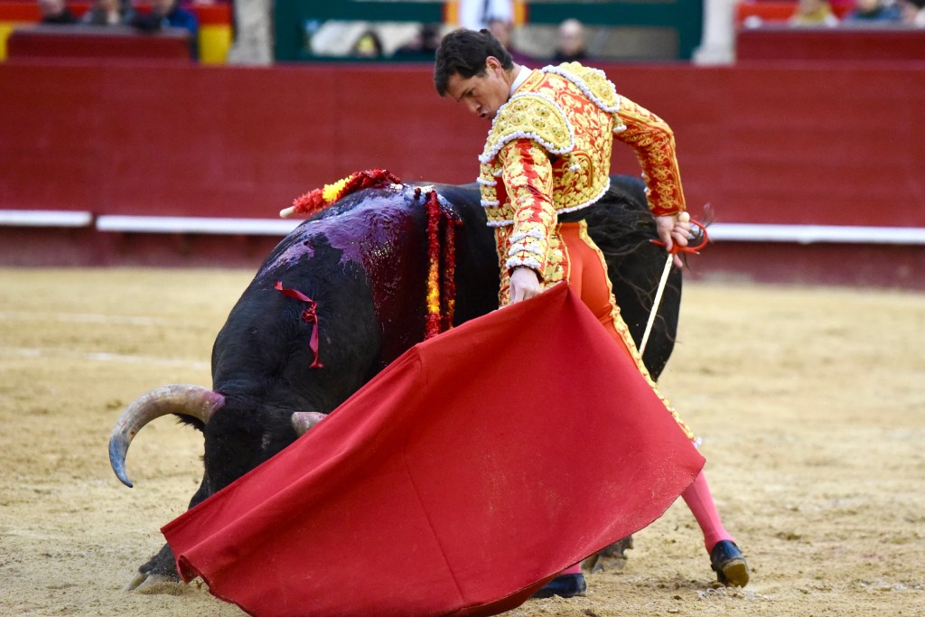 Hasta llegar ahí ocurrió algo así como la gran estafa. Sebastián Castella con toda su buena voluntad se fue a porta gayola a recibir al primero. Sí, ese toro al que ahogo en terrenos de cercanías y medios muletazos violentos. Ni una caricia a ese Juan Pedro fino como una espada al que obligaron a pararse y recortar su embestida. Las buenas hechuras del cuarto hacían intuir otro guión, el mismo de siempre. ‘Pocholo’, que así se llamaba, era un toro más recortado, fino de cabos, lleno, apretado y con buen cuello. Además, con pies, movilidad. Hasta se lo dejó crudito en varas. Toro apto para la faena de Castella de siempre. Sí, bingo, esa que comienza con el pase cambiado. Así empezó, pero cuando tocó empujar la embestida, sujetar la muñeca para darle un tramito más al muletazo y jugar la cintura, aquello no sucedió. Hasta la banda interrumpió Agüero entre tanto tirón.